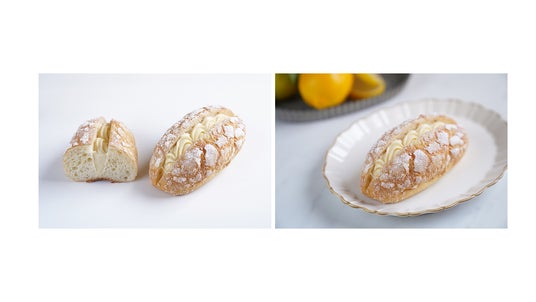 期間限定商品「レモンクリームパン(税込237円)」を販売いたします。レモン風味のふんわりとした生地にレモンクリームをはさんだ爽やかな風味のパンです。