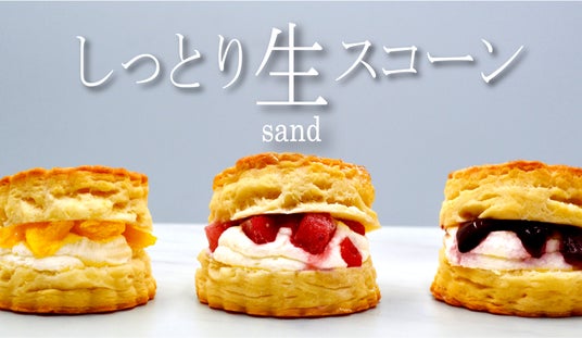 フルーツの酸味と優しい甘さのクリームがバランスよく合わさった新食感の「しっとり生スコーンサンド」。是非お試しください!