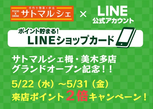 また、グランドオープン記念として、5月22日(水)~31日(金)の10日間は、LINEショップカードの来店ポイント2倍キャンペーンを実施します。