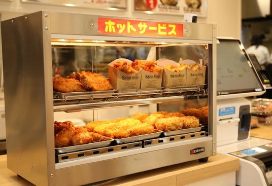 レジ前のホットスナックコーナーでは、唐揚げ・コロッケなどのアツアツ商品もご用意しております。