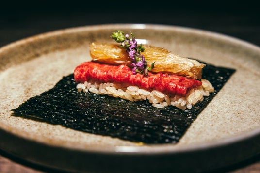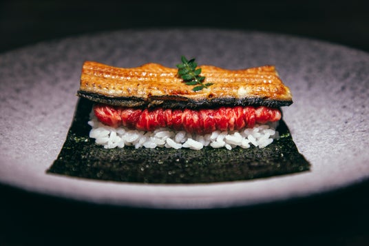 ふっくらと香ばしく焼き上げた“鰻”を主役に、厳選した和牛の赤身とキリッとした赤酢のシャリを九州・有明海産の香り豊かな極上海苔“こんとび”で包んでお召し上がりください。