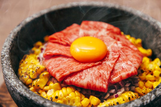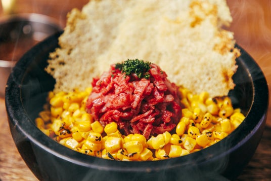 <丸ごと1本>とうもろこしの石焼ご飯 和牛ユッケ添え 1,400円 【うしごろバンビーナ】
