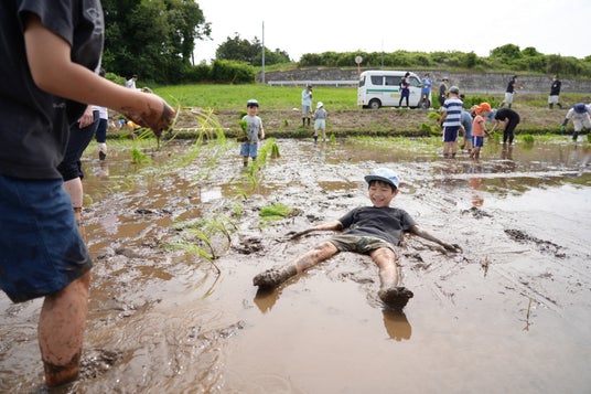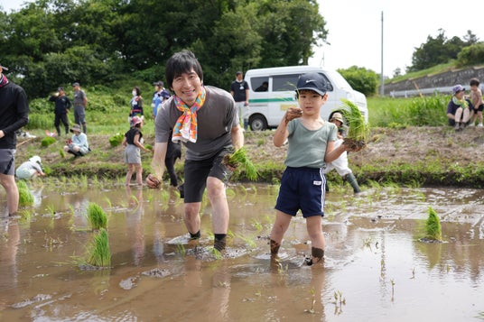 体験会は、「田植え」「生もの観察・草取り」「稲刈り」で構成される3回シリーズの初回です。パルシステムの利用者親子約80人が参加します。参加者はどろんこになりながら、農具を使って田んぼに線を引き、線に合わせて稲苗を手植えします。自宅に持ち帰り育てる「バケツ稲」も配布し、子どもたちは家族と一緒に秋の収穫まで大切に育てます。
