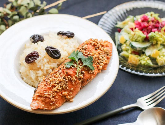 17. 主菜:クラストデュッカサーモン