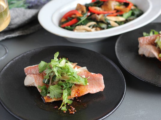 18. 主食:赤魚のアジアン薬味ソース添え