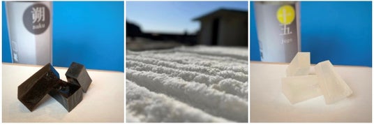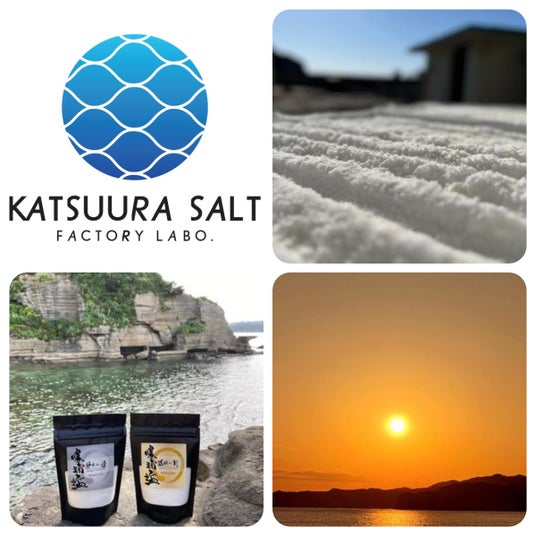 勝浦塩製作研究所が新月の日の鵜原理想郷から採取した海水から平釜式製法にて造られた