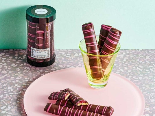 2011年にM.O.F.(フランス国家最優秀職人章)を取得。パリのダロワイヨや有名ホテルを経て、2018年5月パリ郊外にブティックを開設。トゥルビヨンとは「渦巻き」のことで今や誰もが知る製菓技法です。スティック状の人気のサブレの新作は、サクサクとした食感のサブレの上に、とろけるフランボワーズのコンフィをのせ、上品なショコラノワールで丁寧に包み込んだ一品。その他、イチゴのコンフィがたっぷりと詰まったバニラ風味のケークなども登場します。