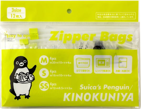 紀ノ国屋プライベートブランドの中でも、多くのお客さまにご好評をいただいている人気商品「スライドジッパーバッグ」に「Suicaのペンギンジッパーバッグ」が新しいデザインになって再登場!