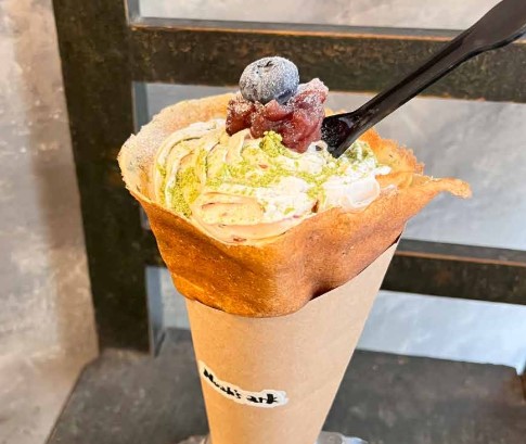 狭山茶葉を使った煎茶と小豆のクレープ (1個)850円