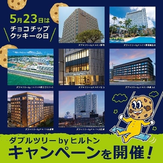 ダブルツリーbyヒルトン那覇首里城(総支配人:西野貴志)は、2024年5月23日の「チョコチップクッキーの日」とダブルツリーbyヒルトン大阪城のグランドオープンを祝して、国内の「ダブルツリーbyヒルトン」ブランドのホテルが共同で、3日間限定でキャンペーンを実施します。