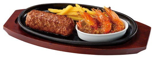 ▲『炭焼きがんこハンバーグ&ガーリックシュリンプ』