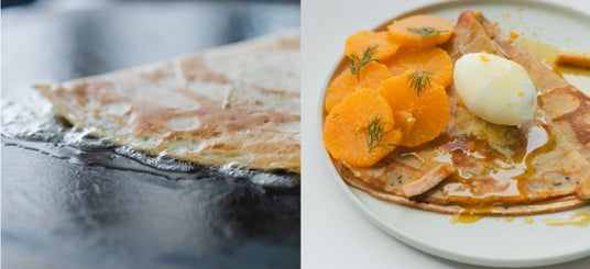 従来のクレープの概念を覆す、時間をかけて1枚ずつ丁寧にプレスしながら焼き付けるプレスクレープは外はカリッと中はもっちりとした新食感のプレスクレープとバターの風味を豊かに残した独自の配合の生地は焼きムラも少なく生地だけでも美味しく召し上がりいただけるスタンダードクレープの2種類を提供します。