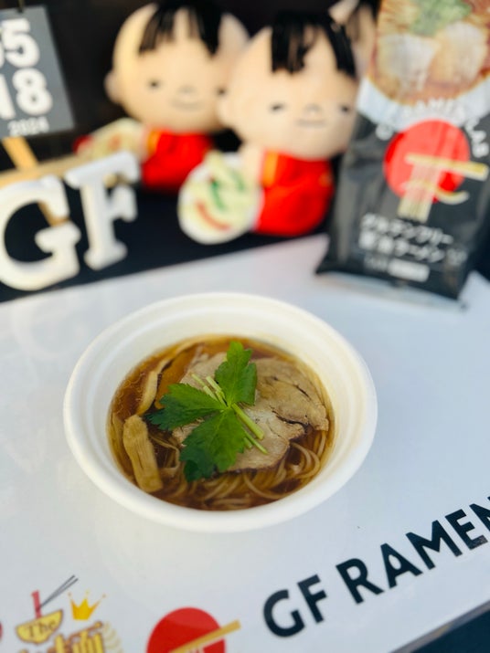 同イベントは、全国選りすぐりの“乾麺”を使ったメニューが集結する日本最大級の乾麺の祭典で、今年は過去最多の36品の乾麺メニューがラインナップ。弊社は、中華めんのカテゴリーから、これまで食の選択肢が限られていた方でもラーメンの美味しさを楽しんでもらえるよう、行列ができる人気店「TSURUMEN」監修のグルテンフリー醤油ラーメンを出店し、両日で約1000食を提供しました。
