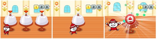 本ゲームは、QBBベビーチーズをシャッフルする3つの入れ物の中から1つ選び、見つけ出すゲームです。