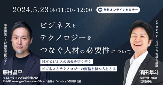 ビジネスとテクノロジーの両視点から新しい価値を創造する力を育む次世代のテクノロジー版MBA、Tech0 Boot Campを運営する株式会社Tech0(本社:東京都中央区、代表取締役:濱田隼斗、以下当社)の代表取締役:濱田隼斗が、2024年5月23日(木)に開催されるキュレーションズ株式会社(本社:東京都渋谷区、代表取締役社長:根本隆之)主催の無料オンラインセミナーに登壇することとなりましたので、お知らせいたします。