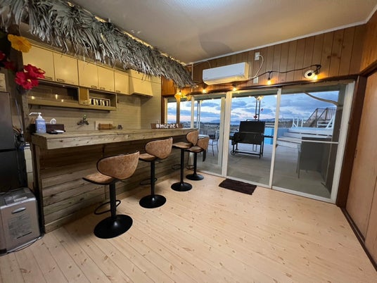 広々としたBBQスペースがあり、大人数で楽しめます。目の前には海が広がり、まるで独り占めしているかのような雰囲気を味わえます。