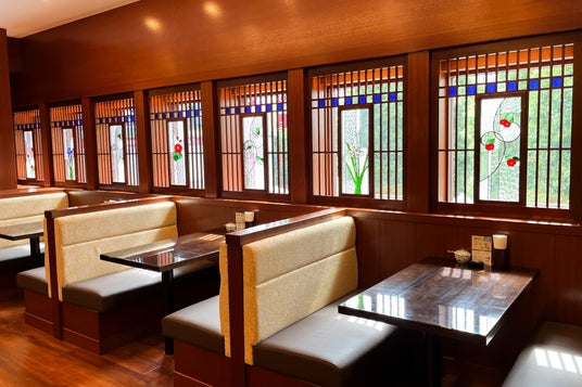 「大正ロマン」溢れる落ち着いた雰囲気の店内は、ステンドグラスから差し込む柔らかい光に包まれ、癒しの空間が広がっています。