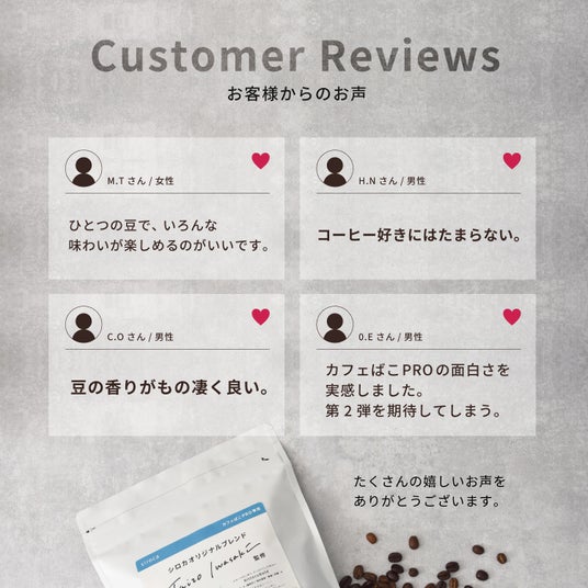 昨年の数量限定販売時、ご購入いただいたお客様からは「ひとつの豆で色んな味わいを楽しめるのがいい」、「豆の香りがとても良い」、「コーヒー好きにはたまらない」、「今後も違った豆で試してみたい」、「比較的マイルドで飲みやすく好みな感じだった。カフェばこPROの面白さを実感した」などのお声が集まりました。さらにアンケートにお答えいただいた方のうち、約60%の方が「また購入したい」と回答。定番商品化により、いつでも「シロカ オリジナルブレンド」をお楽しみいただけます。