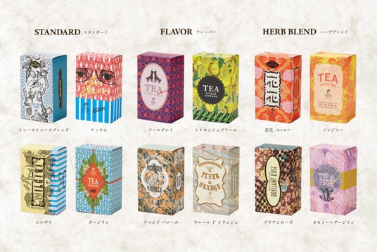 個性溢れる可愛いパッケージが目を惹く紅茶は、スタンダード・フレーバー・ハーブブレンドからなる12種類の味わいをご用意しております。その日の気分に合わせてお好きなものを選んで、ぜひお気に入りの一杯を見つけてみてください。