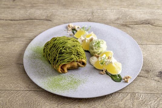 ◆日向夏と抹茶のモンブランクレープ ピスタチオアイスと山椒とホワイトチョコのクランチ