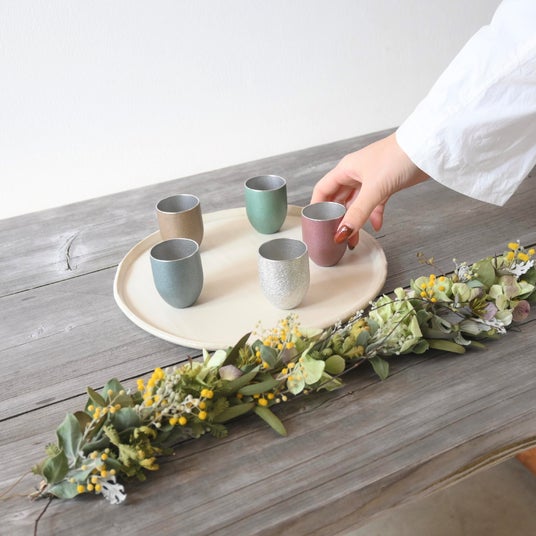 3月にデビューした新シリーズ。漆職人がひとつひとつ丁寧に彩ったやさしい錫と漆のおちょこです。5色の彩りであなたの特別な時間に寄り添います。