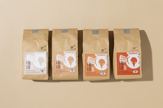 アコメヤブレンド(豆・粉)左から、中浅煎り、中煎り、中深煎り、深煎り 各1,264円コクテール堂が「和食に合う珈琲」としてブレンド。豆のエイジング(自然乾燥)により、不要な渋みを抑え、旨みやコク、まろやかさ、甘みを引き出しています。焙煎の段階別に「中浅煎り」「中煎り」「中深煎り」「深煎り」の4種類。5層構造の特注パッケージで鮮度を保ちます。