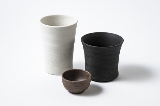 MINO MAKELAY 左から、麦酒タンブラー 各3,520円、酒盃 各2,420円、焼酎カップ 各3,850円陶土の風合いを保ちながら吸水性を抑え、食器洗浄機、電子レンジが使えてリサイクル可能な新素材「MINO MAKELAY(ミノ メイクレイ)」。匂い残りがなく、お酒の繊細な香りが愉しめます。「不動窯」にて品のある佇まいの酒器に仕立てました。各種 白土、赤土、黒土の3色展開。