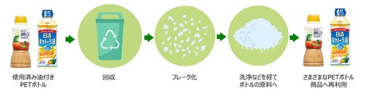 油が付着したPETボトルは、リサイクルの洗浄工程で油が残り、再生PETの品質に影響を与えることが懸念されており、リサイクルの仕組みが社会的に実装されていません。資源循環のためには、油に対するアプローチが重要になります。本取り組みでは、油を使用した商品を取り扱う、日清オイリオグループとキユーピーが企業の枠を超えて協働することで、油を使用した商品のPETボトルが資源循環できる社会を目指します。