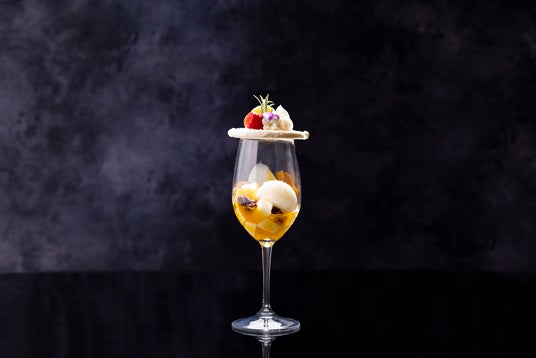 ホワイトチョコレートのムースに西京味噌でコクを加え、黒蜜のゼリー、抹茶アイスクリームとベリーでご用意するパフェ「ジャパニーズ・ガーデン」(¥2,400)は白ごまのクッキークランブルの上に配されたチョコレートとベリーのデコレーションがまるで日本庭園のような装いです。食べてしまうのが惜しくなるほどの美パフェを味わいながら、バー&ラウンジZATTAでご提供している古き新宿から着想を得たカクテルを味わうひと時はいかがでしょうか。