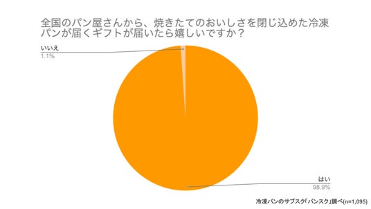 ・パンのギフトをもらったら嬉しいと回答した人は約98%
