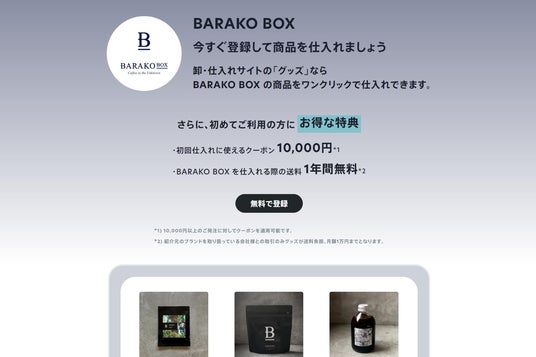■特典 2BARAKO BOXとの取引時の送料 1年間無料(※2)