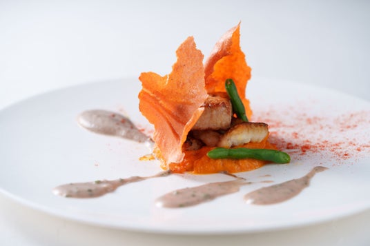 宮城県産ホヤとパプリカのテリーヌ 山椒香るパッションフルーツソース