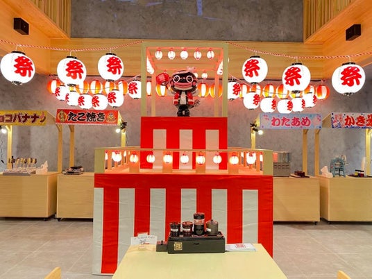 「祭り」をテーマにし、店内には日本文化を感じていただけるよう、盆踊りを踊れるイベントスペースや射的などの屋台を設置した縁日スペースを用意。