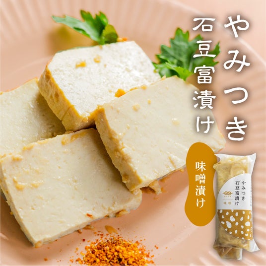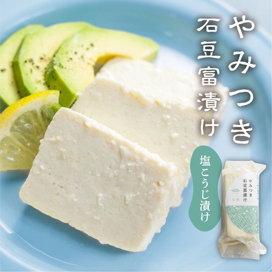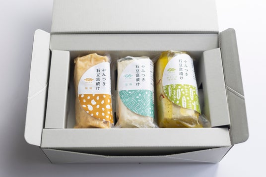 内容:やみつき石豆富漬け 味噌漬け1本、塩こうじ漬け1本、オリーブオイル漬け1本