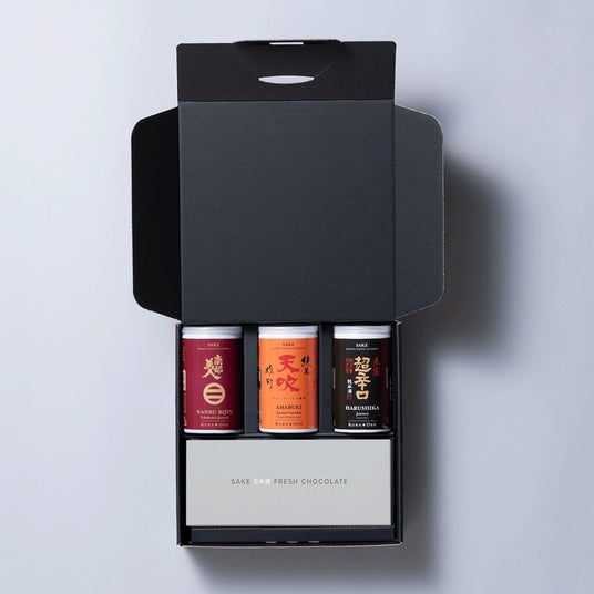 Sake Fresh Chocolate 12個 (3種) + 180ml日本酒 3缶 (南部美人 特別純米 / 天吹 マリーゴールド酵母 / 春鹿 超辛口)