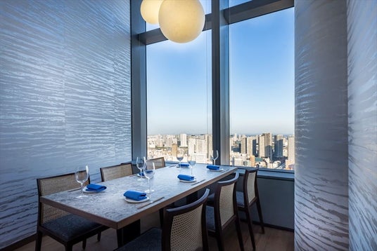 ビジネス街である一方、東京ベイエリアへの観光の拠点として、再び人気が高まる東京・汐留エリア。『水色』は、このエリアでも有数の高層ビル「カレッタ汐留」46階、地上約200mに誕生した、絶景レストランです。