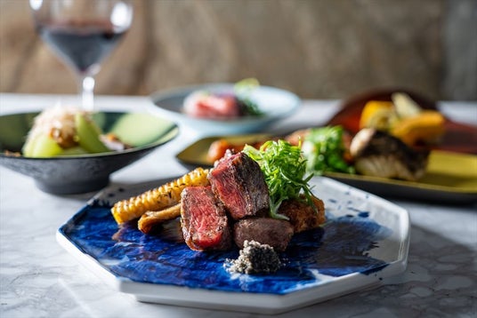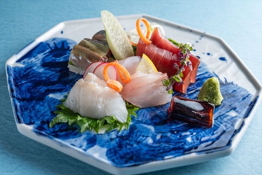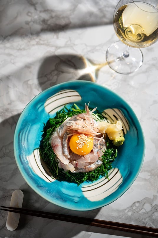 これまでにない形状や味わいが楽しめるお刺身、各国のバーブやスパイスを取り入れた炭焼きなど、日本の伝統的な食文化を基本に、世界中の食材やエッセンスを融合させた和食料理で「和魂洋才」を表現します。