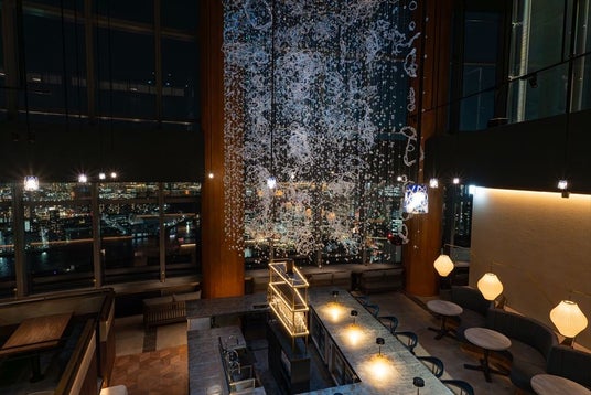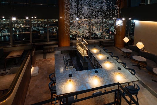空間を彩る装飾には、和紙の壁紙や切子ガラスのペンダントライト、バーカウンターには錫(すず)を採用するなど「和魂洋才」のテーマを空間でも堪能できます。