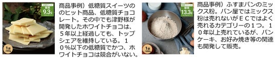 適格なEC商品戦略に則ったカテゴリー追加が売上拡大を後押しした。カテゴリーごとにパンECでの市場規模・競合状況を調べ、低糖質な「食パン」「ベーグル」「クロワッサン」に絞り込み一気に市場を確保。食品EC特性で、家庭調理マーケットが大きい結果がでたので「パンミックス」、「あんこ餡子」などの商品も追加。最後にマーケットが小さい低糖質スイーツの中でも有望な「チョコレート」から開発・販売を開始するなど、成功する可能性が高い新商品を継続的に拡大をしていた大きな要因でもある。