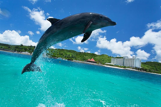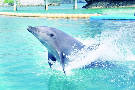 レクチャーの後、イルカがジャンプする姿をすぐ近くで見ることができます。