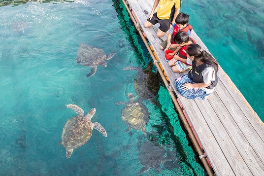 学び考える時間の後、エイやサメ、魚と一緒にシュノーケル。