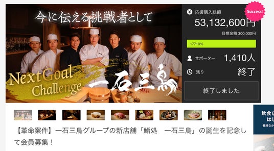 総額2.5億円もの応援購入を獲得した「一石三鳥グループ」