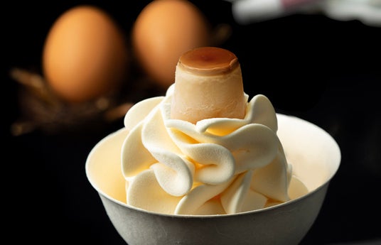 紹介文:プリンそのものを液状にし、-8℃でソフトクリーム状に絞った「100%プリンソフト」の上に、卵黄比率が高い「土佐ジロー」の卵、生クリーム、バニラビーンズをたっぷり使用したミニプリンをのせました。