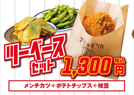 ツーベースセットメンチカツ+ポテトチップス+枝豆のセットです。