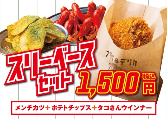 スリーベースセットメンチカツ+ポテトチップス+タコさんウインナーのセットです。