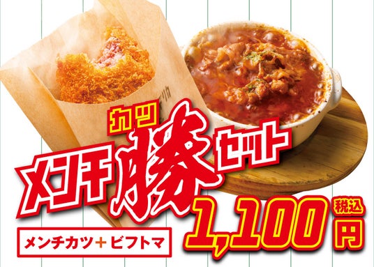 メンチ勝(カツ)セットメンチカツ+牛バラのトマト煮込み(ビフトマ)のセットです。
