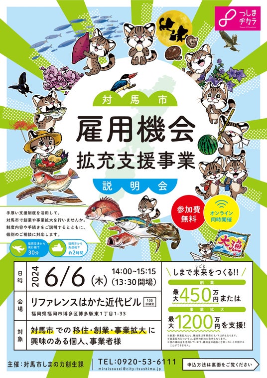 これから対馬市での創業・事業拡大を考えられている方を対象に、対馬市内及び福岡市内での説明会と、個別相談会を実施いたします!