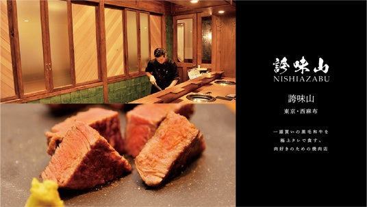 外苑西通り沿いのビル1階にある『焼肉 誇味山(こみやま)』A5ランクの黒毛和牛を一頭丸ごと仕入れるなど、肉の買い付けに力を入れている焼肉店です。店主が自ら芝浦の食肉市場へ通い、肉を知り尽くした目利き力で厳選しています。店内は木を多用した温もりのある空間で、焼肉とともに、厳選されたワインや日本酒も味わえる名店です。