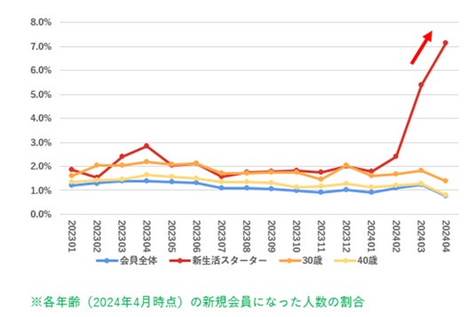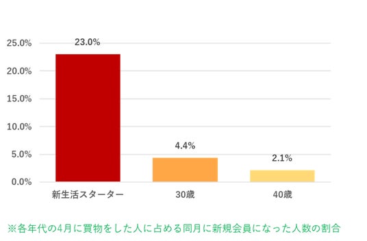 新生活スターターにおいて3月~4月の食品スーパーの新規会員登録率は30歳・40歳よりも高い