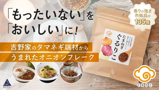 「サスティナブルな社会の実現」をミッションに掲げるフードテックベンチャーのASTRA FOOD PLAN 株式会社(埼玉県富士見市、代表取締役社長:加納 千裕 以下ASTRA FOOD PLAN)は、2024年5月31日から、応援購入サービスMakuake(マクアケ)で、これまで有名ベーカリー店などの事業者のみに販売していた、吉野家の「かくれフードロス(※1)」から生まれた新食材『タマネギぐるりこ(R)』を、小分けパッケージにして一般消費者向けに販売開始します。先行販売のため、先着で通常価格の最大20%オフでご購入いただけます。
